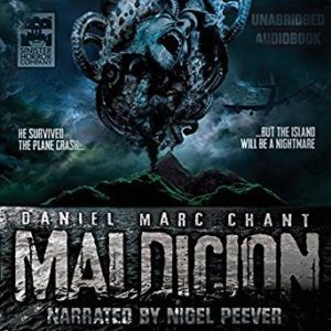 As noted above, Maldicion is not a new story. But Chant has recently adapted most of his back catalogue for the audio market. And he has selected different narrators for most of the stories. The audiobook of Maldicion was released in the Spring of 2017 and is narrated by Nigel Peever, an actor and narrator with over thirty years of experience, from television work such as British soap opera Coronation Street to appearing in Jack the Giant Slayer (2013) and too many audiobook credits to list. In Maldicion, the story of the lone survivor of a plane crash (Englishman Dexter LeGrasse) struggling to survive on a mysterious island, Peever delivers the narration and the inner dialogue of Dexter with a wonderfully theatrical spirit. And the added sound effects and atmospheric background music give the production a dramatic style that compliments the story and fits beautifully.