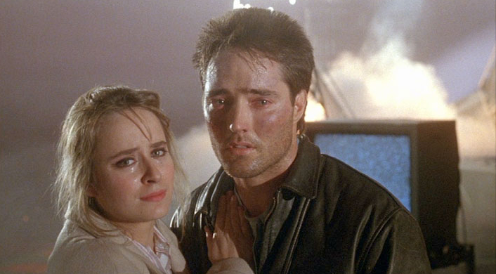 The film shows an almost gleeful disregard for its rather more serious minded forebears. And it is hard to believe that the same director was responsible for both sequels. The actual scanning scenes, handled surprisingly well in previous chapters (no mean feat, as it tended to feature two people grimacing at each other) have evolved into be some sort of extreme gurning contest. The already dubious science involved is stretched to further ludicrous lengths when Helena discovers her scanning ability can be transferred onto video tape and broadcast into every home via the television network.