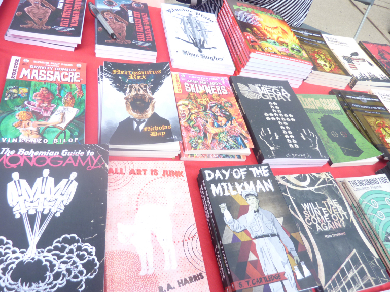 Genre-themed conventions are just as community-based as anything the bizarro community might be participating in; however, it is the continued growth of the community that allows it to thrive. The Midwest Bizarro Writers have organized a sales booth at the massive Printer’s Row in Chicago two years in a row; here, there is an alliance of bizarro presses on display, with genre stalwarts like MP Johnson and Michael Allen Rose piloting the starship. The Midwest bizarros also make appearances at several events in Illinois.