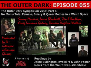 In this podcast The Outer Dark presents the fourth installment of The Outer Dark Symposium on the Greater Weird 2019 including the panel: ‘No Man’s Tale: Female, Binary & Queer Bodies in a Weird Space’, moderated by Larissa Glasser and featuring Laura Blackwell, Craig Laurance Gidney, Sunny Moraine, teri.zin/Zin E. Rocklyn, and Damien Angelica Walters, …