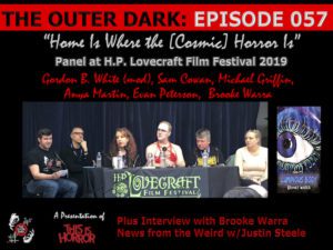 In this podcast The Outer Dark presents ‘Home Is Where the [Cosmic] Horror Is’ Panel at H.P. Lovecraft Film Festival 2019 moderated by Gordon B. White and featuring Sam Cowan, Michael Griffin, Anya Martin, Evan Peterson, and Brooke Warra, plus an introductory interview with Brooke Warra and News from The Weird with Justin Steele. Home …