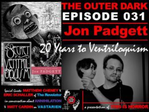 In this podcast Scott Nicolay interviews Jon Padgett, author of The Secret of Ventriloqusim and co-editor of Vastarien: A Literary Journal. Plus co-editor Matt Cardin, an update on The Outer Dark Symposium on the Greater Weird 2018 and the Annihilation movie reviewed by Eric Schaller and Matthew Cheney. The Outer Dark Symposium on the Greater Weird is a unique immersive …