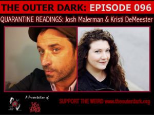 The Outer Dark presents Quarantine Readings by Josh Malerman and Kristi DeMeester. This episode’s content was recorded on Tues. March 16 and Thurs. March 25, 2021. Show Notes The Outer Dark Quarantine Reading series continues with Kristi DeMeester and Josh Malerman (0:48:23). Kristi reads the complete story ‘Immolation’ (Nox Pareidolia, Nightscape Press, 2020) (0:10:33) and …