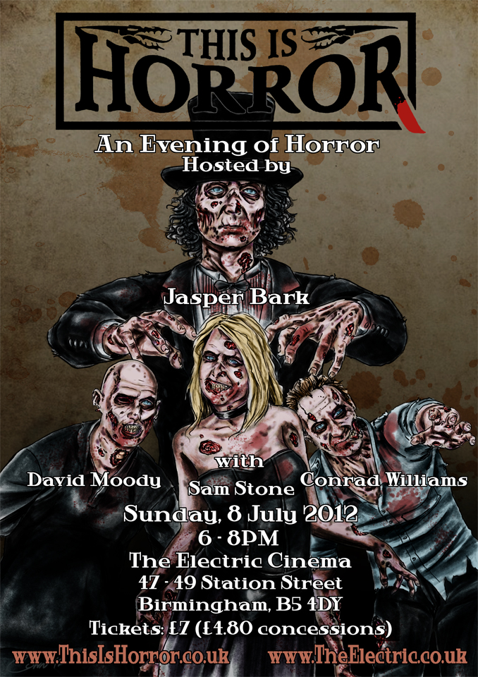 We are proud to present a brand new evening of horror literature at The Electric Cinema, Birmingham as part of Shock & Gore 2012, as award-winning horror author and crowd favourite Jasper Bark plays host to special guests David Moody and Sam Stone, three acclaimed authors who will be answering questions from the audience and reading excerpts from their work.