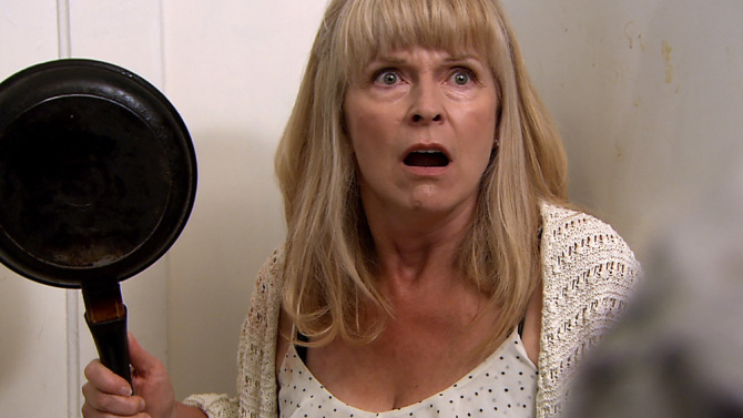 Filmed in handheld 4:3 ratio with an almost fly-on-the-wall documentary feel AAAAAAAAH! focuses on a family unit headed by alphas Ryan (Julian Rhind-Tutt) and Barbara (Toyah Wilcox). Ryan happily unpacks a new flat-screen TV and Barbara makes dinner in the kitchen by following a salt and sugar loaded recipe from a topless, overtly sexual television chef, all while previously supplanted alpha male Jupiter (Julian Barratt) meekly lives under a bush in the garden and is sneakily fed Battenberg cake by the daughter Denise (Lucy Honigman).