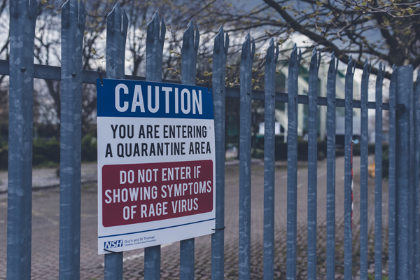 Razor wire, army vehicles, menacing warning signs, pre-recorded public service announcements—all of these greet us as we arrive (and it doesn’t hurt that it’s raining too, adding to the overall sense of doom and gloom) and instantly immerse us in the world of the zombie apocalypse (yes, yes, they’re not really zombies, but they might as well be) before we’ve even stepped inside.