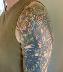 Although I don’t have any specific horror tattoos, I’ve seen the work of various ‘horror’ artists online and in magazines, and like the work of Bob Tyrrell, Dan Henk and Ron Russo to name a few.