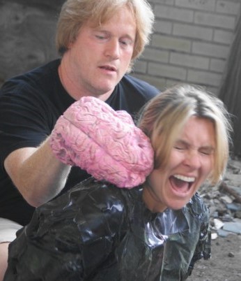 GL: No, I didn’t try. I wanted the gags to be fun like in the original, and I tried to spin the original gags for the fans of the original, but the tone of this one is much more like that of a comic book, with bright colours. I do think that the scenes which feature Debbie Rochon’s disembodied face floating in a bathtub full of slime, offering to blow her boyfriend, are the most outrageous and disturbing scenes I’ve shot.
