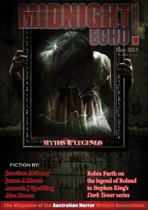 The Australian Horror Writers Association and Midnight Echo magazine have announced the brilliant cover for issue #9. The magazine features a story by Jonathan Maberry and a feature on Stephen King’s Dark Tower series. Mel Gannon has provided the superb artwork. The magazine can be ordered from the Midnight Echo website.