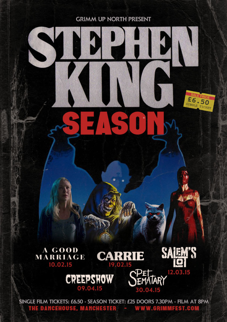 Manchester’s horror movie moguls have announced that they will be running a Stephen King season from Oxford Road’s Dancehouse in early 2015. Beginning 10 February, a host of Stephen King films will be shown at the old theatre. The line-up consists of: A Good Marriage, Carrie, Salem’s Lot, Creepshow and Pet Sematary. Advanced tickets are available for each individual screening priced at just £6.50 and season passes, allowing entry to all five films, are on sale at £25. To find out more and purchase tickets please visit the Grimmfest website.