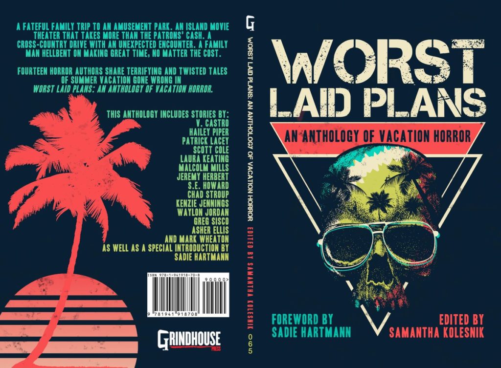The debut anthology from Grindhouse Press, Worst Laid Plans: An Anthology of Vacation Horror, edited by Samantha Kolesnik, with a foreword by Sadie Hartmann, out now