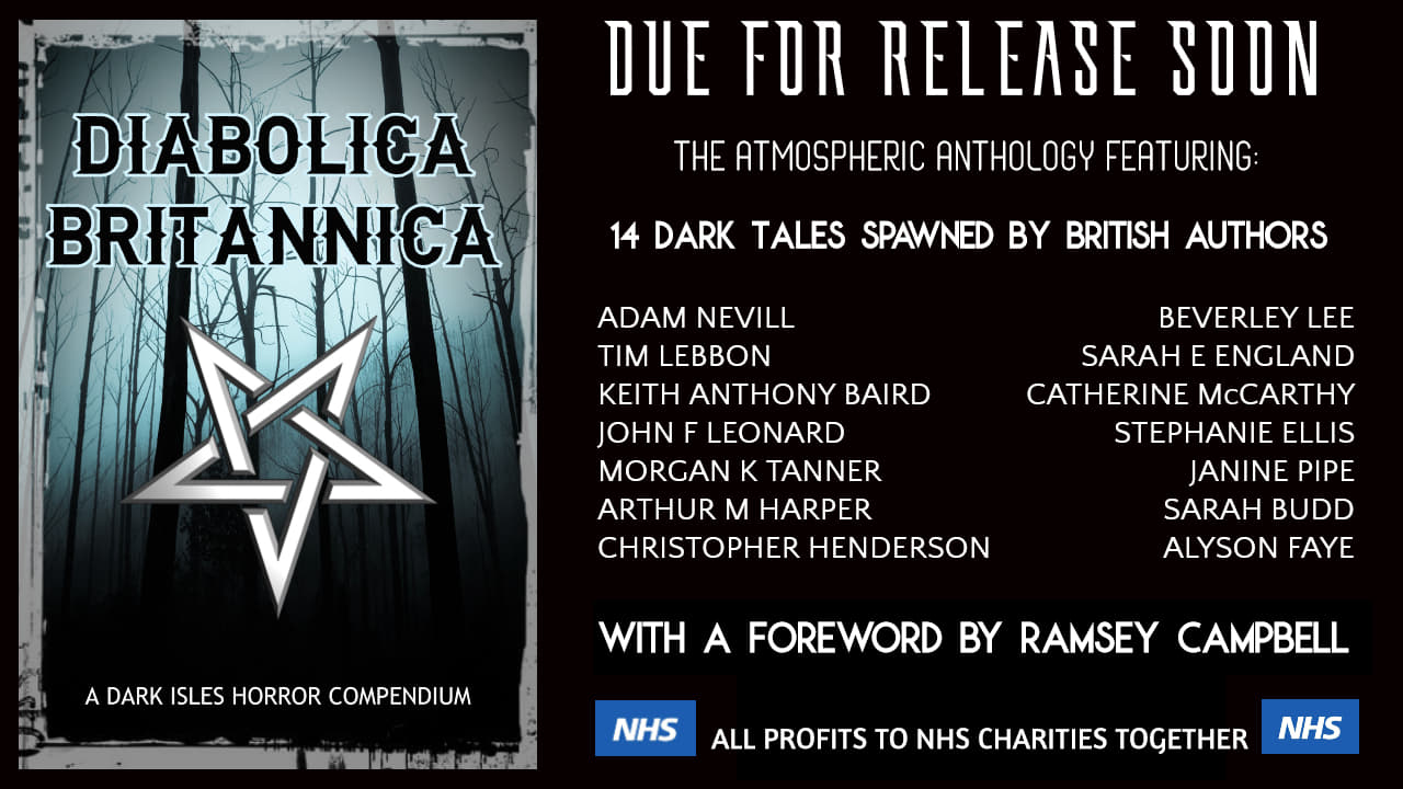 Diabolica Britannica is a collection of 14 dark tales from the dark isles. Edited by Keith Anthony Baird, and featuring stories by genre titans Adam L G Nevill and Tim Lebbon alongside new talents such as Stephanie Ellis, Morgan K. Tanner and S. J. Budd, Diabolica Britannica also features a foreword by Ramsey Campbell. With all profits going to the UK’s National Health Service, you can pick up your copy right now, here.