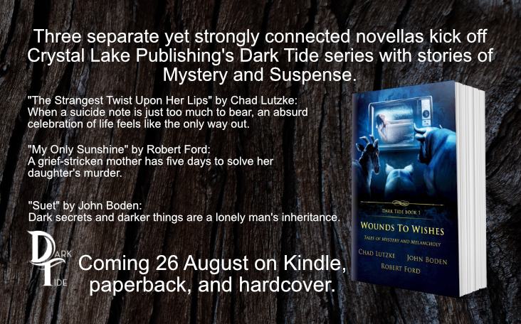 Wounds to Wishes, the first of Crystal Lake Publishing’s new Dark Tide series, coming 26 August from writers Chad Lutzke, John Boden and Robert Ford