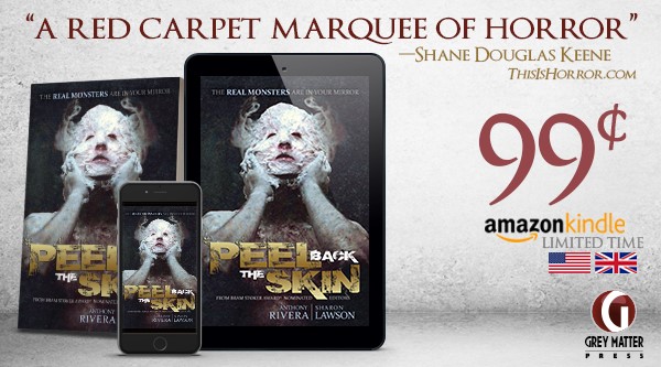 Grey Matter Press have announced a wide-ranging sale on many of their eBook titles, starting with last year’s outstandingly well received anthology, Peel Back the Skin. Including stories from Jonathan Maberry, Ray Garton, Tim Lebbon and more, the collection is now available for just ninety-nine cents, or pence, depending on your region. Their other titles from 2017, including Before, by Paul Kane and the entire John D. Taff back catalogue, are also available at $2.99. You can find the Peel Back the Skin offer here.