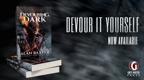 New genre-melding novel, Devouring Dark, from Alan Baxter, out now