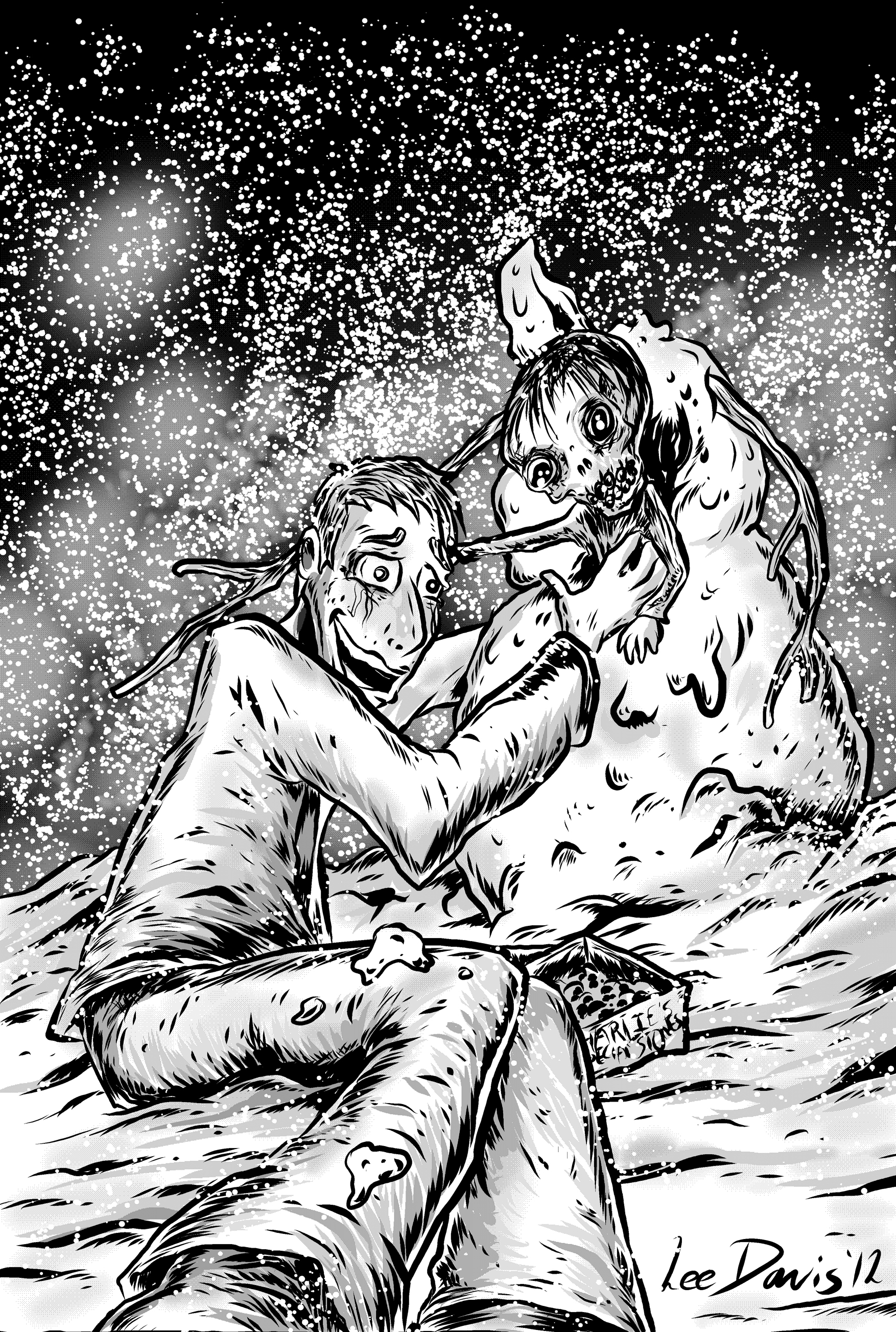 A black stone had fallen at the snowman’s base, stick-arms drooped low to nudge Liam’s shoulders.