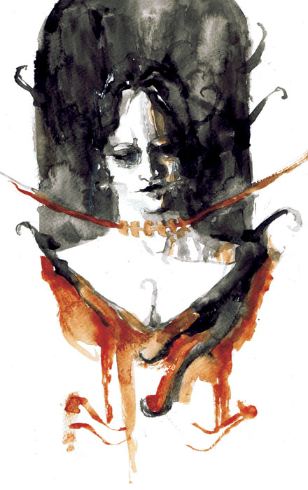 Iestyn knew there had to be a wire in the mechanism, somewhere inside those vertebrae, being coiled into the clockwork motor of the pendant – a pendant now rising and pushing in under Michaela’s Adam’s apple – but he could do nothing as the necklace cut like a razor into her skin, as the seconds and then minutes passed, nothing but scuttle away, stuffing his mouth with his fist to stop his own screaming, hers long throttled as her feet kicked at the discarded wrapping paper and toppling Christmas tree, watching as it whirred and clicked without stopping until it reached bone.