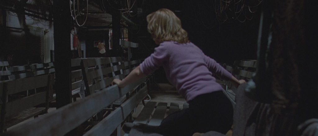 What I am pleased to say, is in the remake, nearly forty years later, Sarah, the final girl of My Bloody Valentine not only falls less, but she also gets her own backstory, which makes me happy. Feels like as a society we’re making progress and it’s a great way too for the remake to show a different sort of maturity. In the remake we know more about Sarah. She’s got a child, she manages the town grocery store, and she’s brave. She is a developed, relatable character. In the original version Sarah was what one of my professors back in graduate school would have referred to as a ‘sexy lamp.’ She’s pretty, but doesn’t do much.