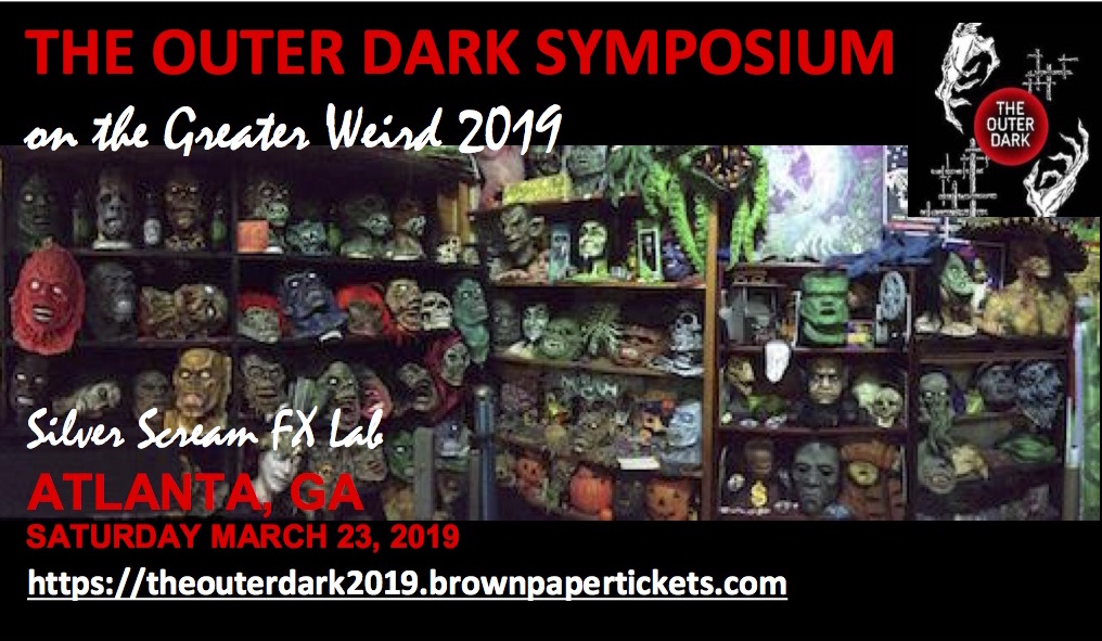 Due to the intimate and immersive nature of this spectacular one-of-a-kind symposium, attendance is limited to 75 attendees. Memberships/tickets are $100 if purchased before Feb. 28. On 1 March, the price rises to $125, if the 75-membership limit has not been met. No tickets will be sold at the door. Attendees can book a group room rate of $149/night (King or Double) at Hotel Indigo-College Park until 1 March or the room block is filled. Call (404) 767-8881, and ask for group code ODP (Outer Dark Podcast). An Indiegogo campaign to raise additional funds to fully support the symposium will launch in mid-February. More sponsors will be announced soon, and sponsorship opportunities are still available.