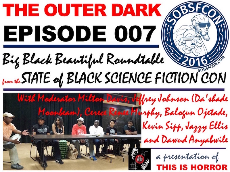 In this podcast The Outer Dark presents the panel “Big Black Beautiful Roundtable” from the first State of Black Science Fiction Convention in Atlanta, GA. The moderator was Milton Davis, and the panelists were Jeffrey Johnson (Da’shade Moonbeam), Cerece Rennie-Murphy, Balogun Ojetade, Kevin Sipp, Jazzy Ellis, and Dawud Anyabwile. It was recorded live on Sunday June 12, 2016. The broadcast also includes an introductory interview with Milton Davis.