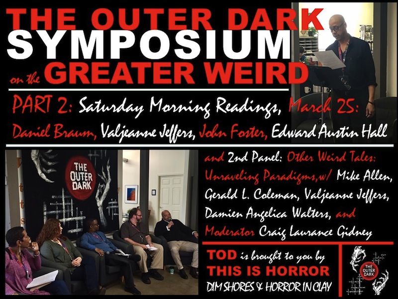 In this podcast The Outer Dark presents the second installment of The Outer Dark Symposium, including readings by Daniel Braum, Valjeanne Jeffers, John Foster and Edward Austin Hall, as well as the second panel “Other Weird Tales: Unraveling Paradigms as the Protagonist Shifts Away from the Cis White Male.” These segments were recorded live on Saturday March 25.
