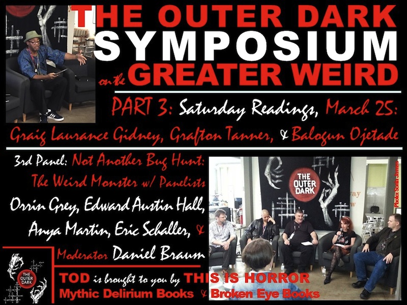 In this podcast The Outer Dark presents the third installment of The Outer Dark Symposium, including readings by Craig Laurance Gidney, Grafton Tanner, and Balogun Ojetade, as well as the third panel ‘Not Another Bug Hunt: The Weird Monster as a Study of Singularity and in Différance’, moderated by Daniel Braum and features Orrin Grey, Edward Austin Hall, Anya Martin, and Eric Schaller. These segments were recorded live on Saturday March 25.