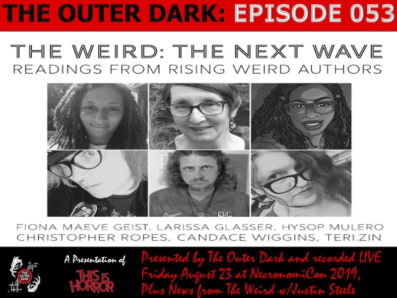 In this podcast The Outer Dark presents The Weird: The Next Wave, Readings from Rising Weird Authors at NecronomiCon 2019 including Fiona Maeve Geist, Larissa Glasser, Hysop Mulero, Christopher Ropes, Candace Wiggins, Teri.Zin/Zin E Rocklyn, and the return of News from the Weird with co-host Justin Steele. The Weird:The Next Wave was recorded live on Friday August 23 at NecronomiCon, and News from the Weird was recorded Sunday September 15.