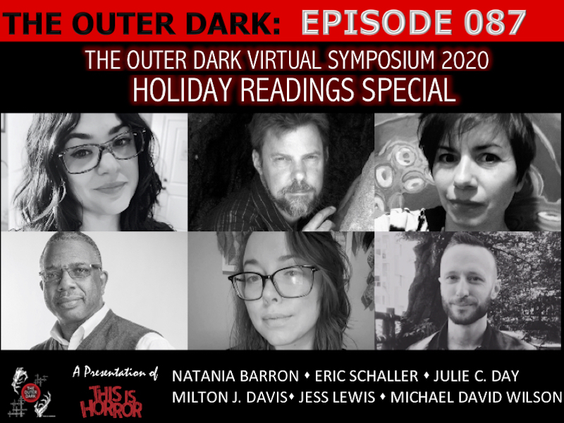 In this podcast, The Outer Dark Virtual Symposium 2020 presents a Holiday Readings Special featuring authors Natania Barron, Eric Schaller, Julie C. Day, Milton J. Davis, Jess Lewis, and Michael David Wilson. This programming was recorded on Saturday August 15 and Sunday August 16, 2020.