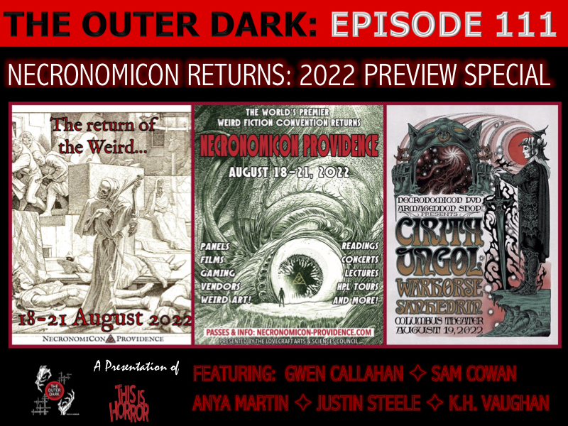 The Outer Dark presents an exclusive preview of NecronomiCon Providence 2022, featuring Programming Chair K.H. Vaughan, Film Programming Co-Chair Gwen Callahan, Justin Steele, and Sam Cowan of Dim Shores Press. This podcast’s content was recorded on July 31, August 2, and August 3, 2022.