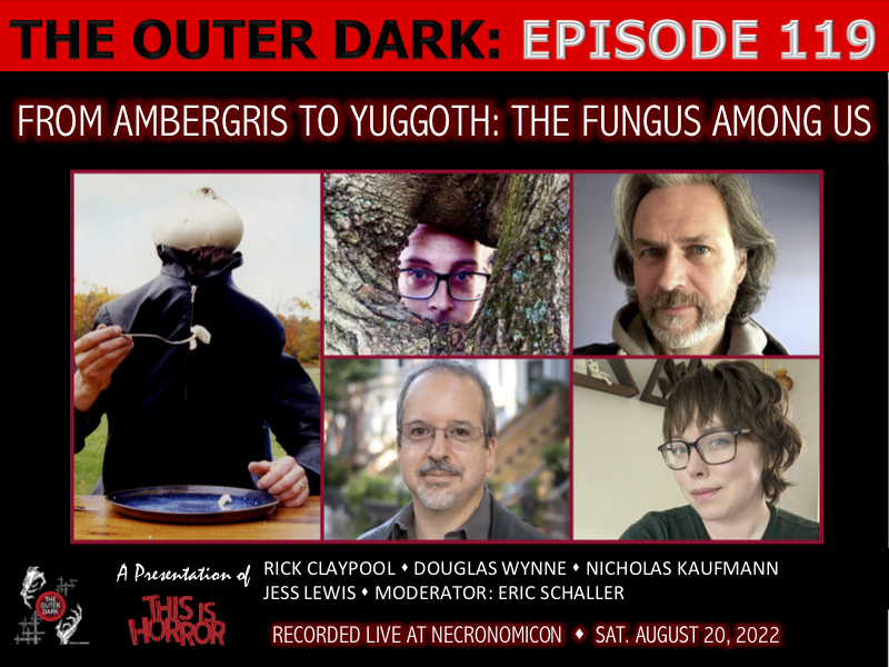 The Outer Dark presents “From Ambergris to Yuggoth: The Fungus Among Us” a NecronomiCon 2022 panel moderated by Eric Schaller and featuring Rick Claypool, Nicholas Kaufmann, Jess Lewis, and Douglas Wynne. This podcast’s content was recorded in Providence, RI, on August 20, 2022.