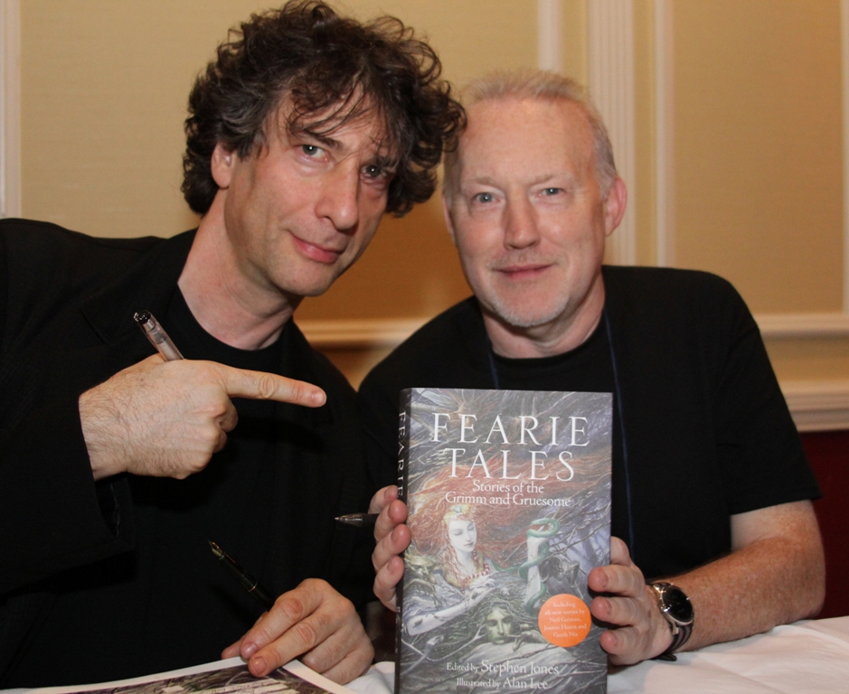 Stephen Jones and Neil Gaiman at the Fearie Tales launch at the WFC photo by Peter Coleborn